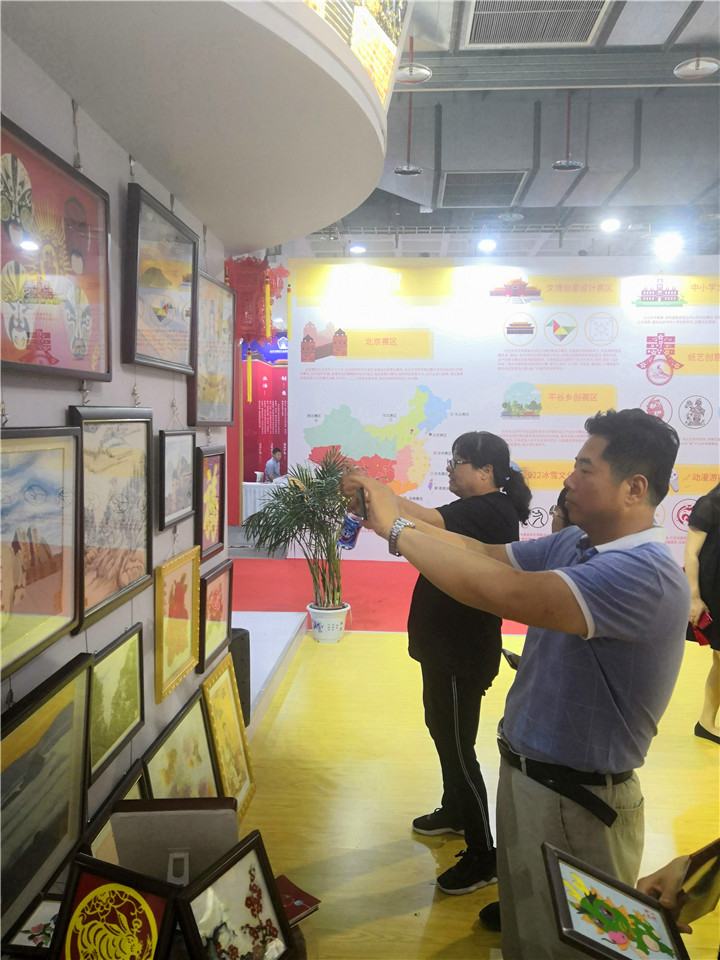 2019年第十四屆中國北京國際文化創意產業博覽會(以下簡稱“文博會”),于2019年5月29日至6月1日在北京舉辦,本屆文博會服務國家擴大開放戰略,著力搭建中外文化交流互鑒平臺,共有2個國際組織、68個國家與地區的86個境外代表團組參加活動;全國12個省區市代表團參展參會。河北展區以“文潤河北,冀望未來”為主題, 重點展示了河北優秀傳統文化和文化產業的發展成果,其中省非物質文化遺產鄭氏砂藝(畫)作為承德市唯一一家受邀參加此次會展的文化產業,提供參展作品50余幅,再次讓鄭氏砂畫傳統藝術走出河北、走向世界。我縣旅游和文化廣電局及博物館相關領導應邀一同參觀指導。
