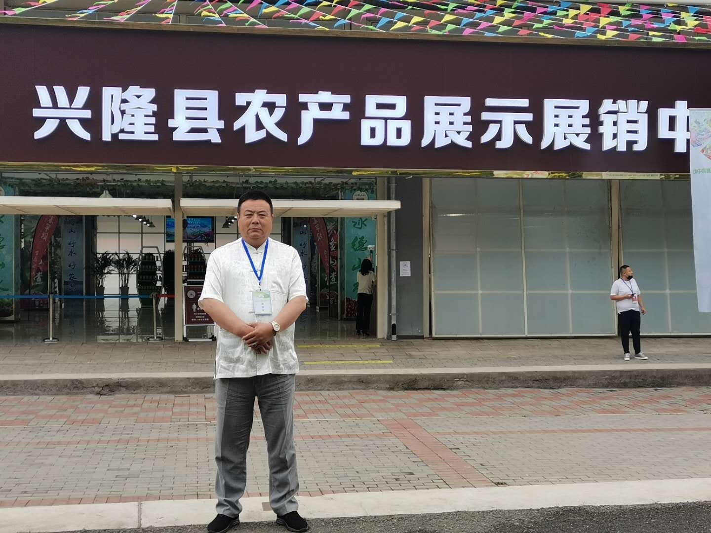 董事長鄭鐵軍在展示展銷中心拍照留念