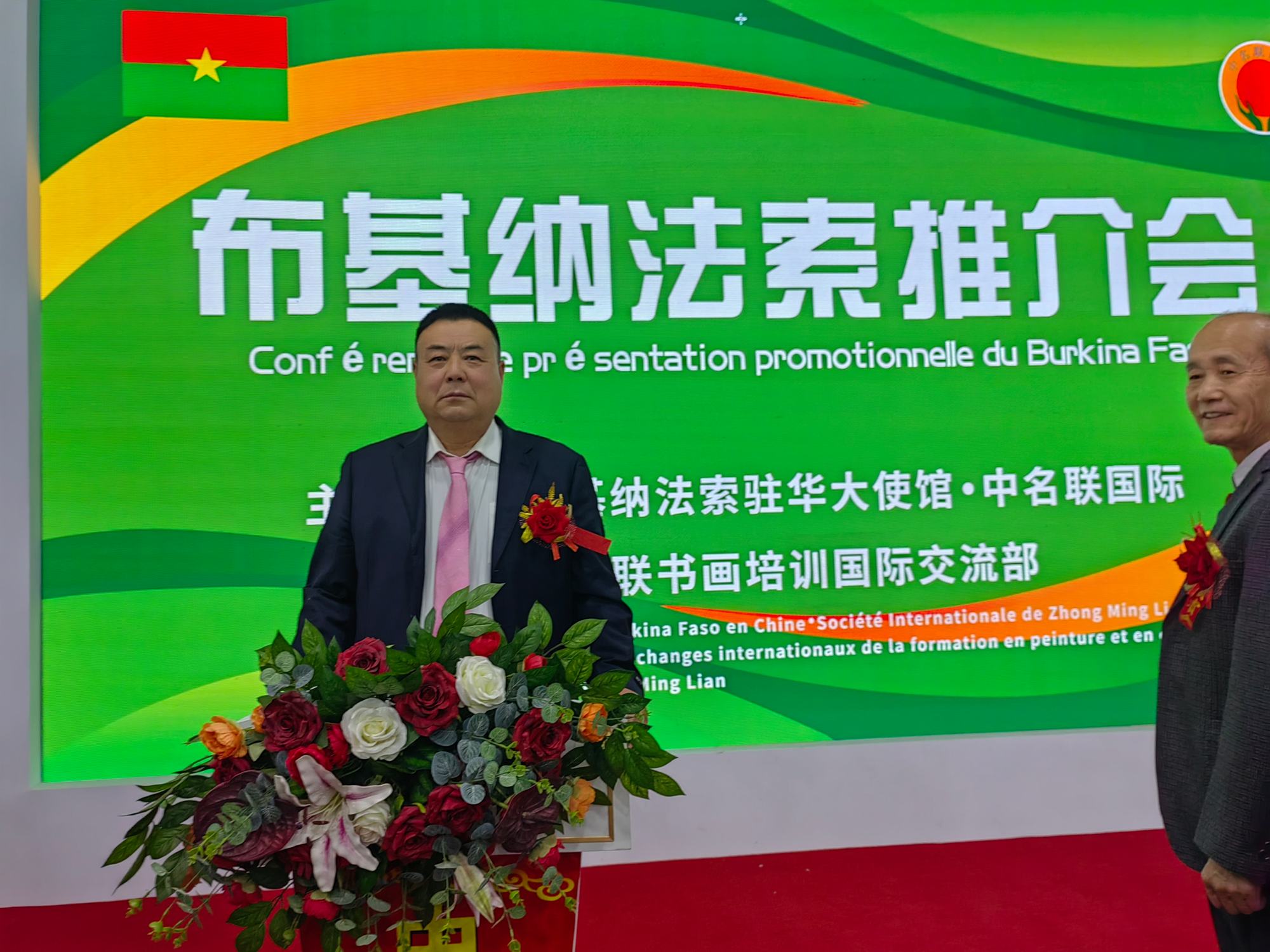 2023年4月12日,興隆縣鄭氏砂藝文化有限公司執行董事長鄭鐵軍參加由布基納法索駐華大使館.中名聯書畫培訓國際交流部主辦的“布基納法索國家推介會”和“中名聯191期經濟與藝術交流會”。會上,布基納法索共和國駐華大使團、商務代表團一行對鄭鐵軍的砂畫作品高度贊賞,并現場簽訂了訂購協議,頒發了收藏證書,授予鄭鐵軍“中非文化交流使者”榮譽稱號。