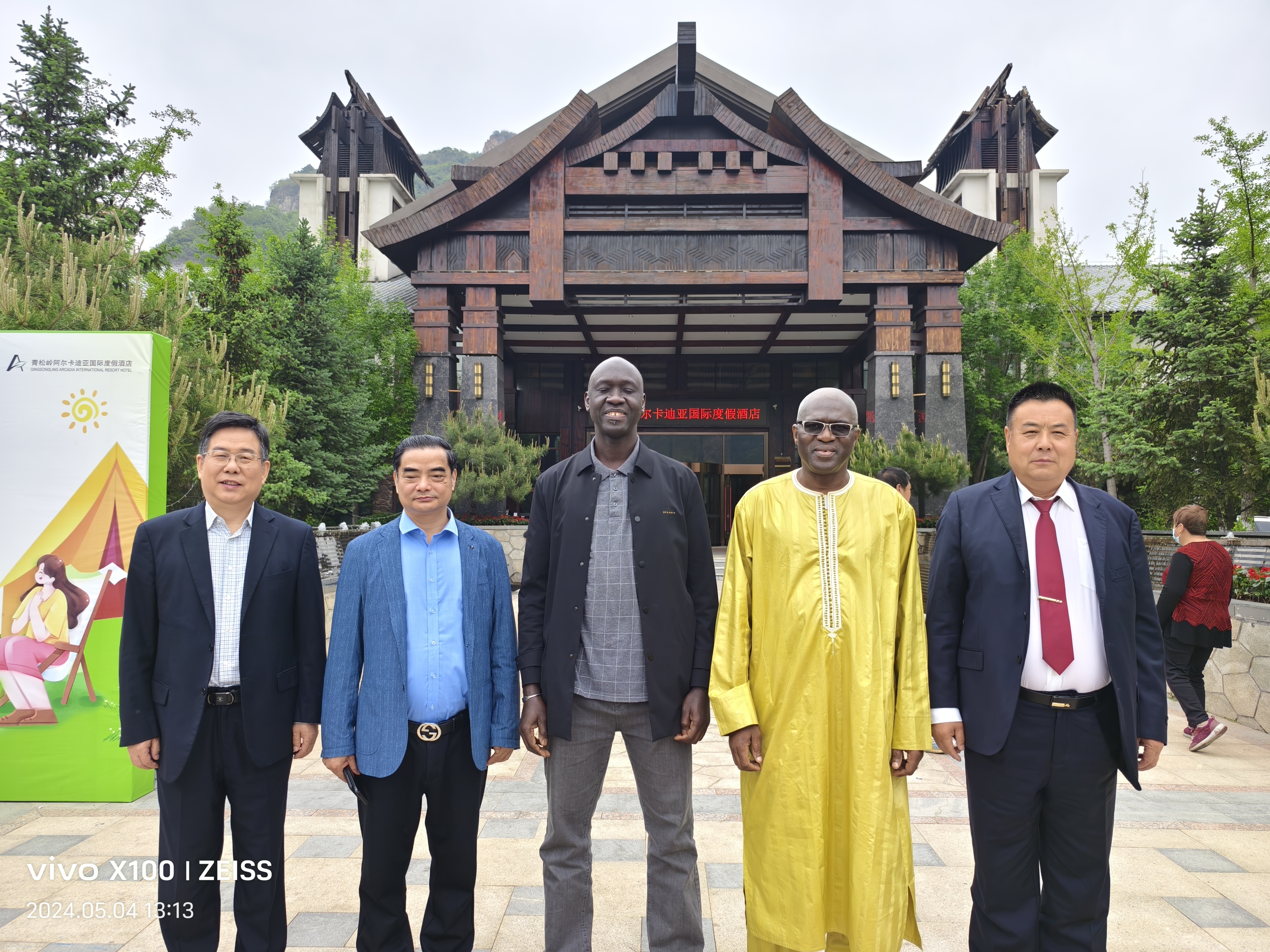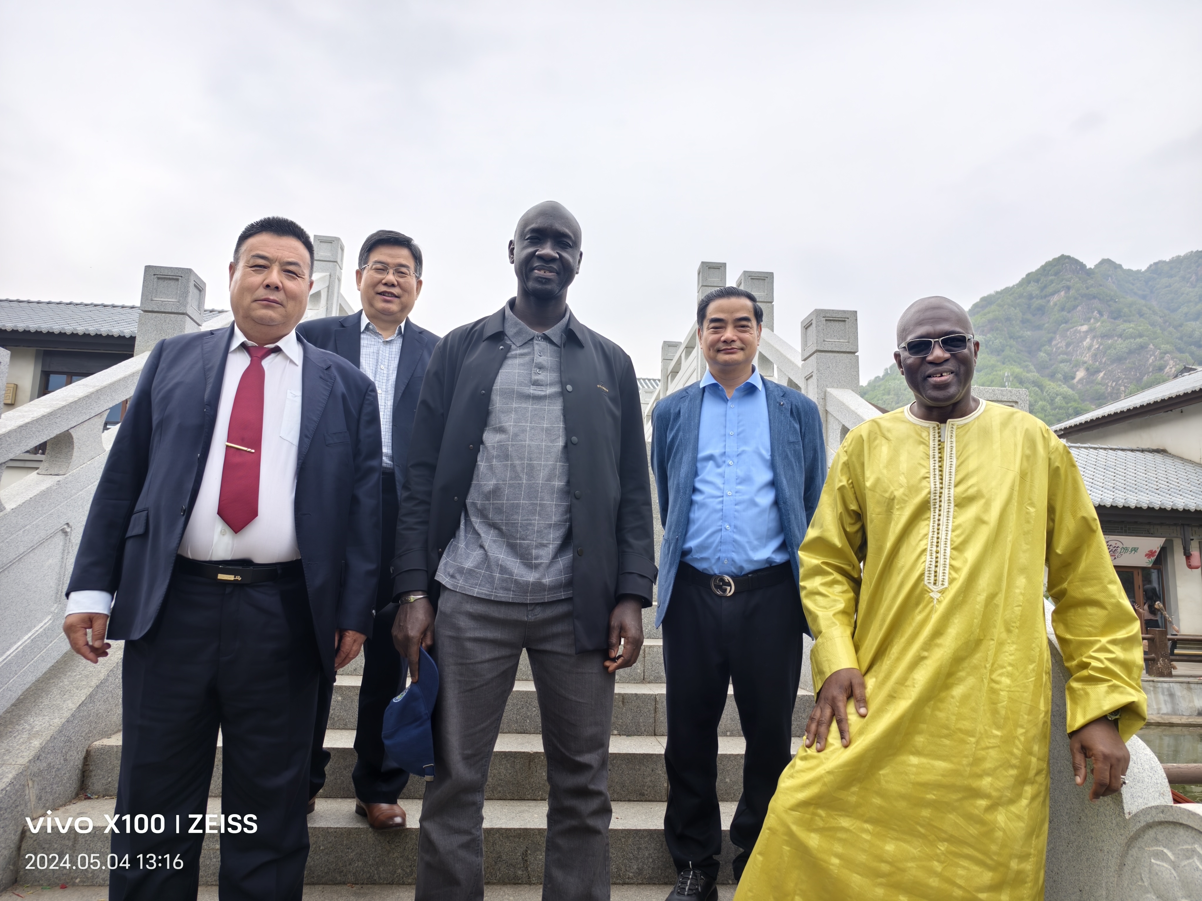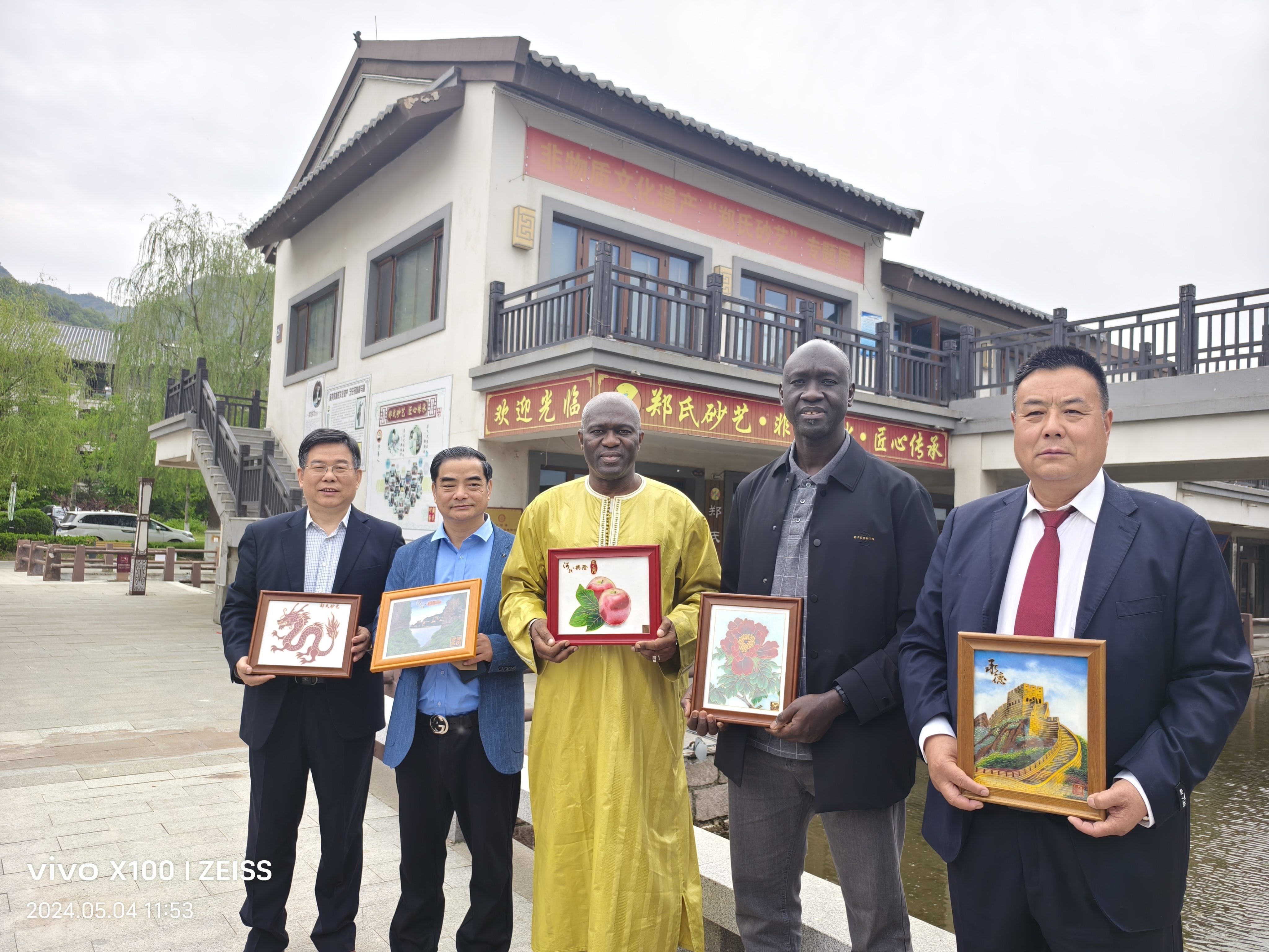 (圖片說明:中名聯將攜各國駐華使團共同對鄭氏砂藝展開系列考察、代言、出口貿易、落地文化經貿服務中心,從左至右分別是:鄭氏砂藝董事長鄭鐵軍、邯鄲市華冶工貿有限公司黨委書記、董事長張書明、塞內加爾駐中國大使館副官阿壩·瓦德上校、中名聯戴本領、科特迪瓦共和國駐華大使館國防武官阿達馬科內空軍準將)