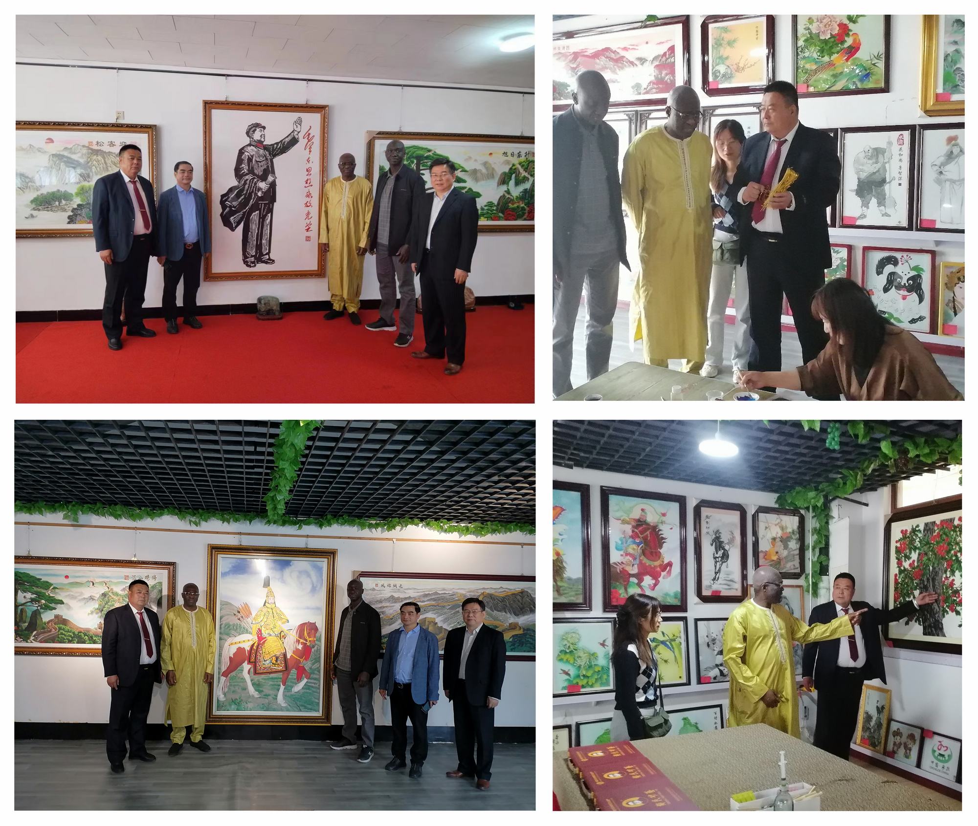 又是一年春暖花開時,值此“五一”勞動節之際,應興隆縣鄭氏砂藝文化有限公司(以下簡稱鄭氏砂藝)邀請,由中名聯國際引薦,5月5日上午,科特迪瓦共和國駐華大使館國防武官阿達馬·科內(空軍準將)、塞內加爾共和國駐中國大使館副官阿壩·瓦德上校蒞臨鄭氏砂藝進行參觀考察。訪問人員在中名聯集團董事長戴本領和趙蘋女士、邯鄲市華冶工貿有限公司黨委書記、董事長張書明、鄭氏砂藝董事長鄭鐵軍等人員的陪同下參觀了后苗圃“鄭氏砂藝”非遺展館和青松嶺水鎮“鄭氏砂藝”非遺博物館。此次參觀活動不僅讓外國友人領略了“鄭氏砂藝”的深厚文化底蘊,也促進了中外文化的民間交流與融合。