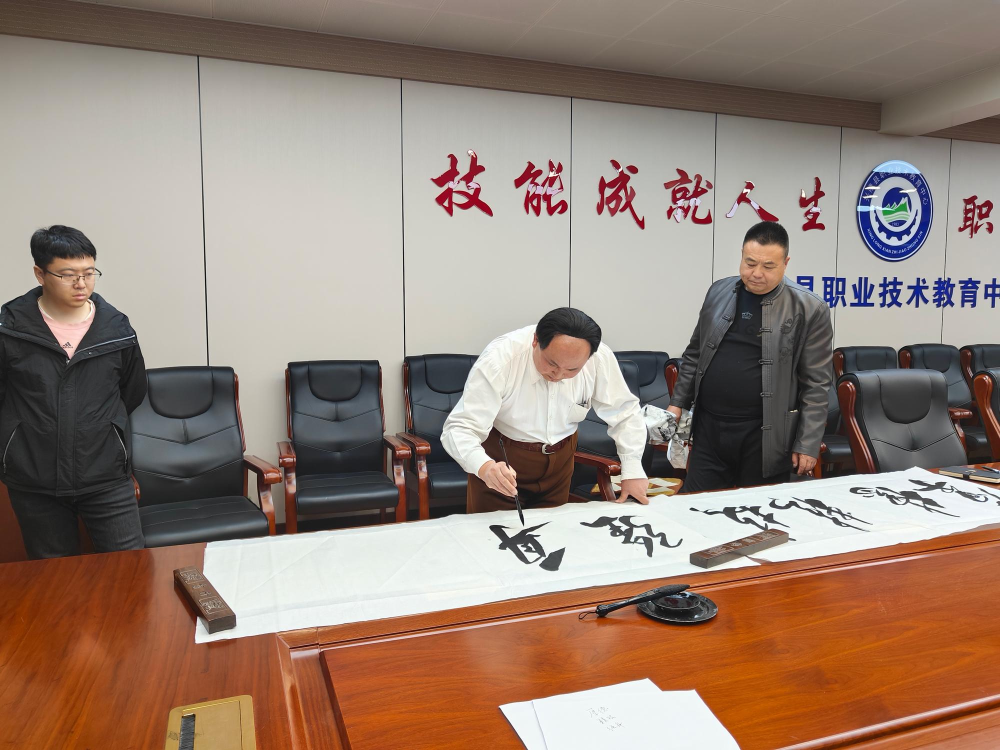 本次活動(dòng)得到了老科協(xié)會(huì)長(zhǎng)張江及傳統(tǒng)文化分會(huì)會(huì)長(zhǎng)鄭鐵軍的全力支持。同時(shí),國(guó)家特型演員、國(guó)家一級(jí)書(shū)法家趙士奎老師也親臨現(xiàn)場(chǎng),為全校師生呈現(xiàn)了一場(chǎng)精彩的互動(dòng)體驗(yàn)。興隆縣職業(yè)技術(shù)教育中心黨委書(shū)記楊景華對(duì)各位嘉賓的到來(lái)表達(dá)了熱烈的歡迎與衷心的感謝。