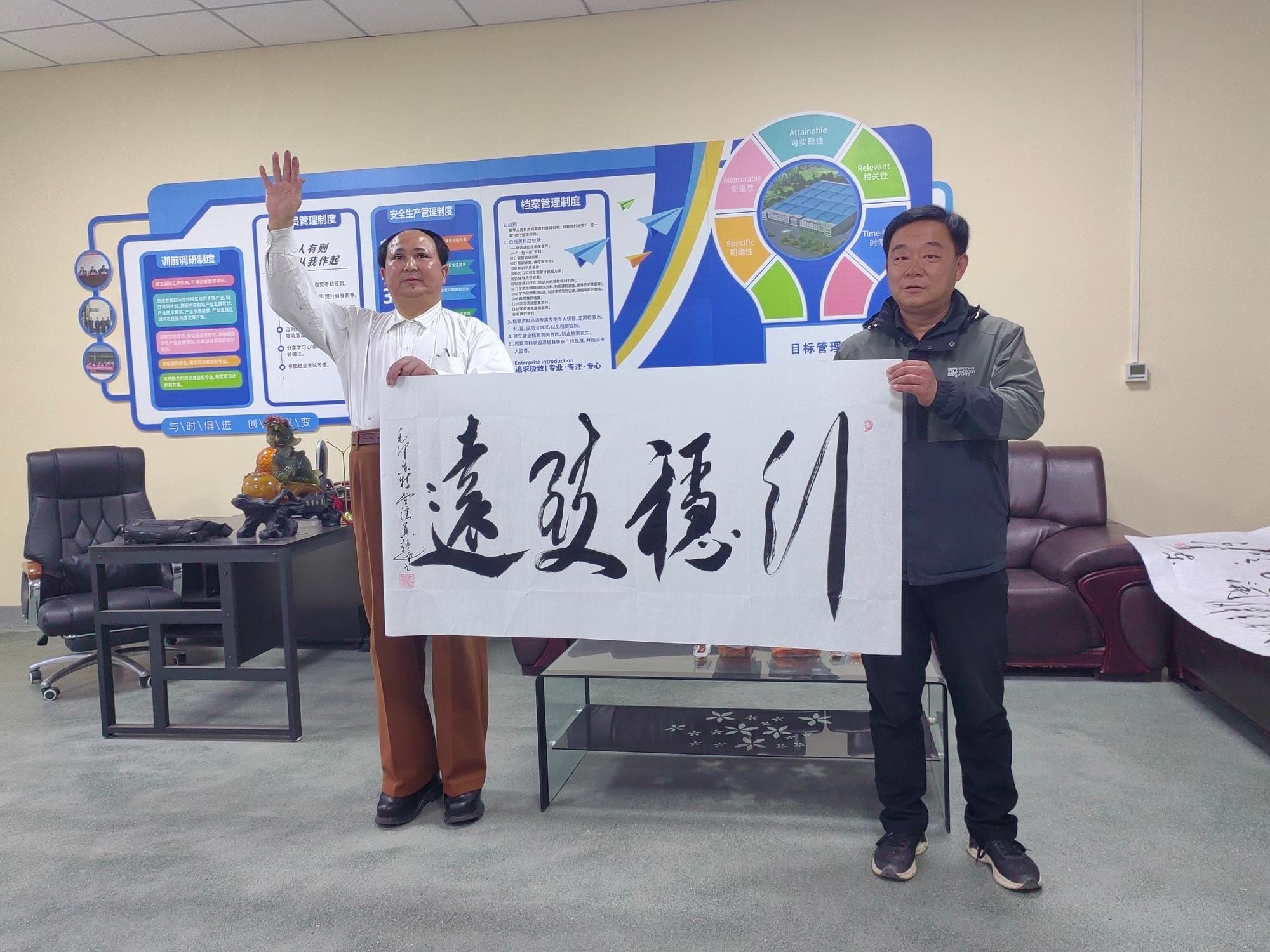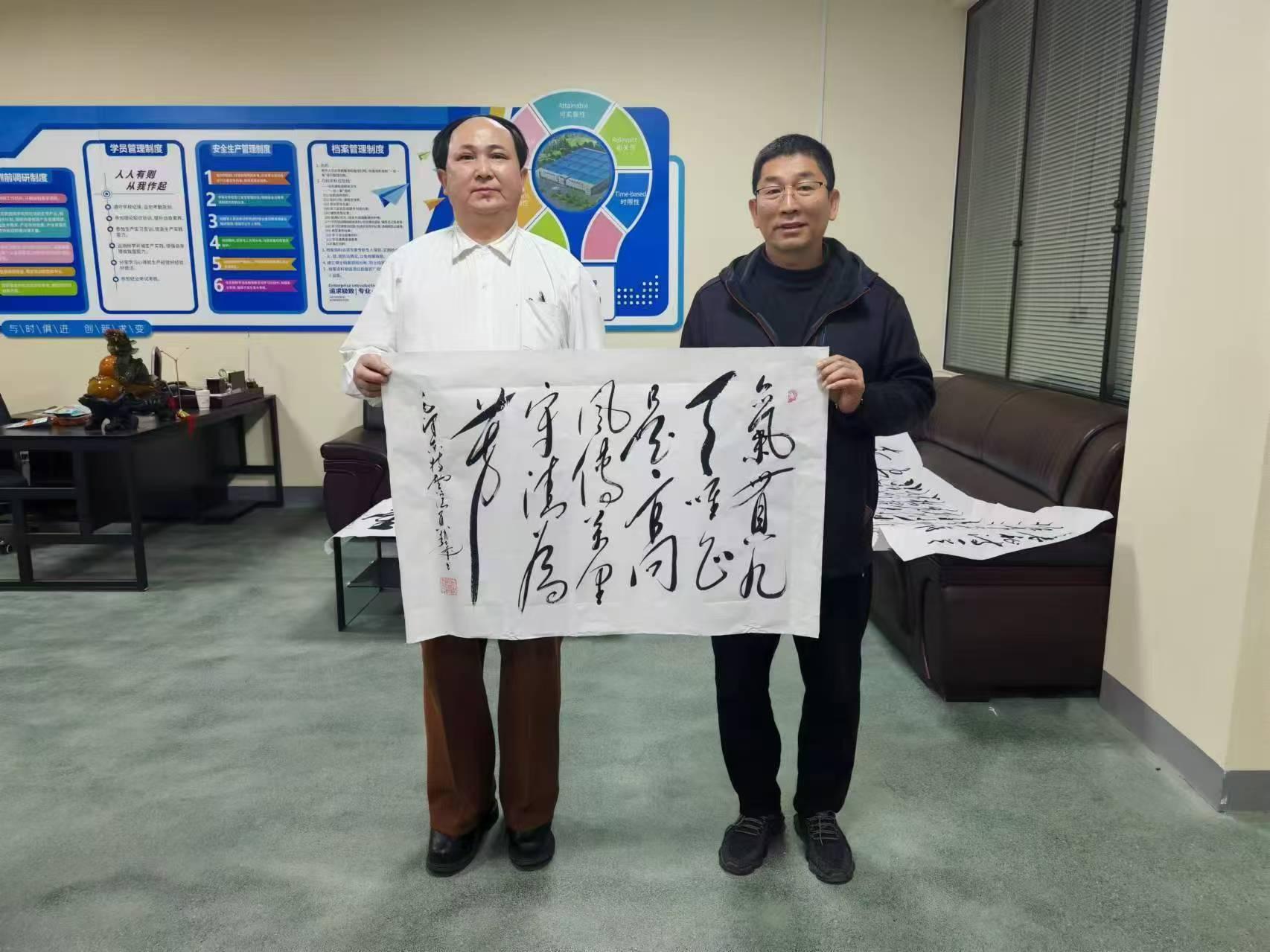 參觀結(jié)束后,趙士奎老師現(xiàn)場題寫了多幅書法作品贈予樺維公司。隨后,趙老師與現(xiàn)場員工進行了互動環(huán)節(jié),他生動形象地再現(xiàn)了偉人的風范,并深刻宣講了偉人思想的崇高精神。趙老師期望這次傳統(tǒng)文化交流活動能夠融入企業(yè)文化建設之中,能夠成為樺維企業(yè)文化建設的一部分,激勵員工在工作中不斷追求卓越,同時也為企業(yè)的整體環(huán)境增添文化氛圍。