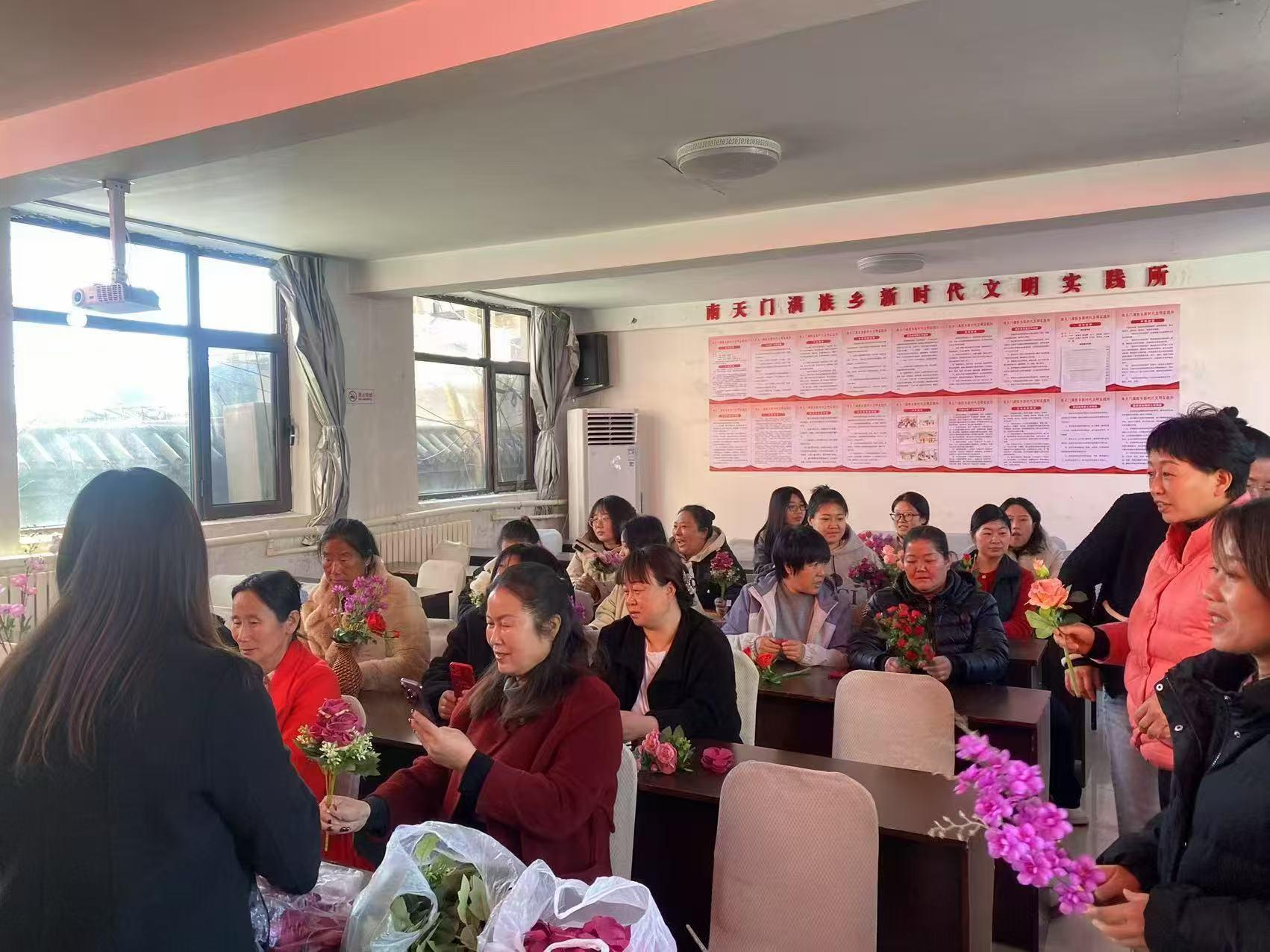 2025年3月6日,由南天門滿族鄉人民政府主辦,鄭氏砂藝承辦的“巧手筑花藝 巾幗綻芳華”慶“三八”插花體驗活動在南天門鄉政府圓滿結束,吸引了30余名南天門鄉農村女性的積極參與。此次活動通過絹花制作體驗,生動展示了傳統工藝在鄉村振興中的積極作用,為鄉村發展注入了新的活力。
