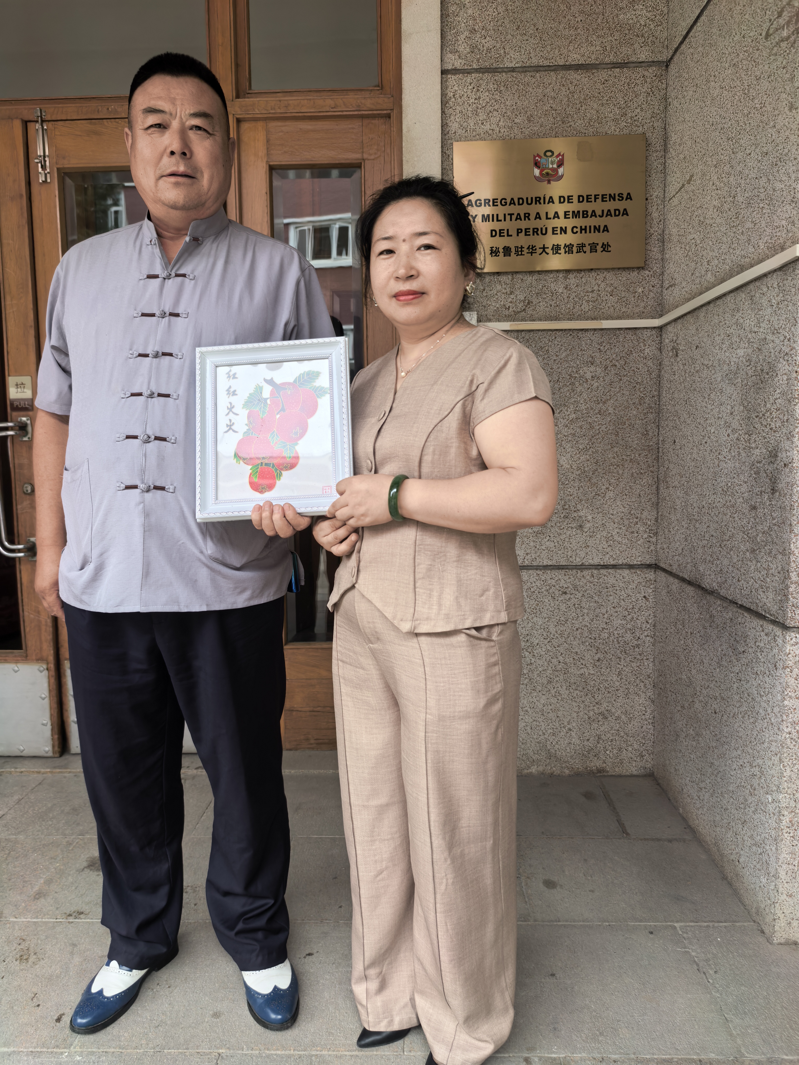 秘魯駐華大使館國(guó)防兼陸軍武官處大使對(duì)鄭鐵軍先生的來(lái)訪表示了熱烈歡迎并給予了熱情接待。在親切友好的交流氛圍中,鄭鐵軍先生闡釋了選擇《紅紅火火》作為贈(zèng)禮的深刻寓意。他表示,作品以鮮艷的中國(guó)紅為主色調(diào),寄托著對(duì)中秘兩國(guó)人民友誼長(zhǎng)存、關(guān)系發(fā)展如同作品名稱一般“紅紅火火”、蒸蒸日上的美好祝愿。