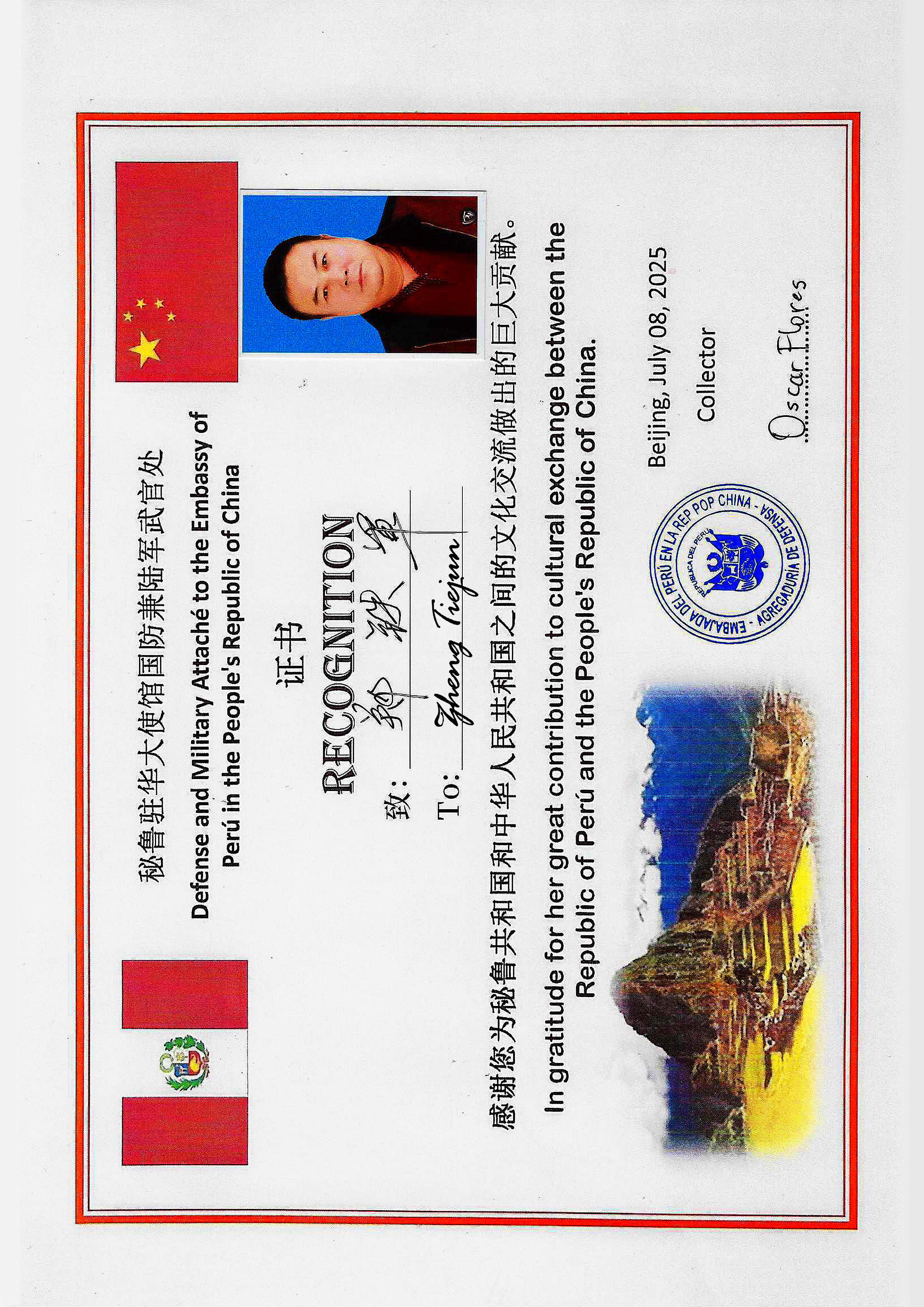 2025年7月15日,應(yīng)秘魯共和國(guó)駐華大使館盛情邀請(qǐng),非物質(zhì)文化遺產(chǎn)“鄭氏砂藝”第五代傳承人、中名聯(lián)簽約國(guó)禮藝術(shù)家鄭鐵軍先生今日到訪使館,開展了一場(chǎng)富有成效的中秘文化交流活動(dòng)。鄭鐵軍先生的代表作《紅紅火火》被秘魯駐華大使館正式作為國(guó)禮永久珍藏,成為兩國(guó)友誼的新見證。