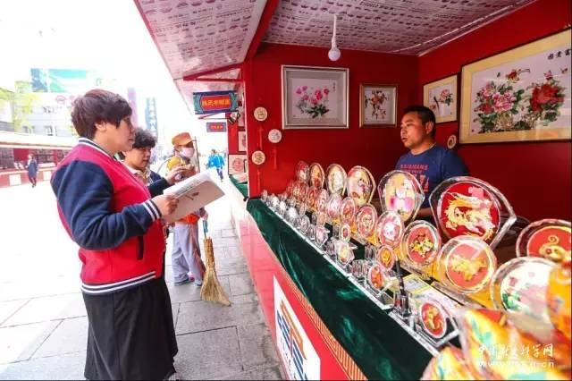 據介紹,這項活動是東城區政府和承德市政府全面落實京津冀一體化要求,加強兩區市有效對接的一項具體舉措。雙橋石氏剪紙、豐寧滕氏布糊畫等承德非遺大師作品、民間手工藝品以及怡達山楂、承德神栗等綠色農產品悉數亮相王府井步行街,此外,步行街的攝影展區也換上了120幅承德風景作品。本次活動將持續至4月10日。圖為觀眾在活動現場駐足。
