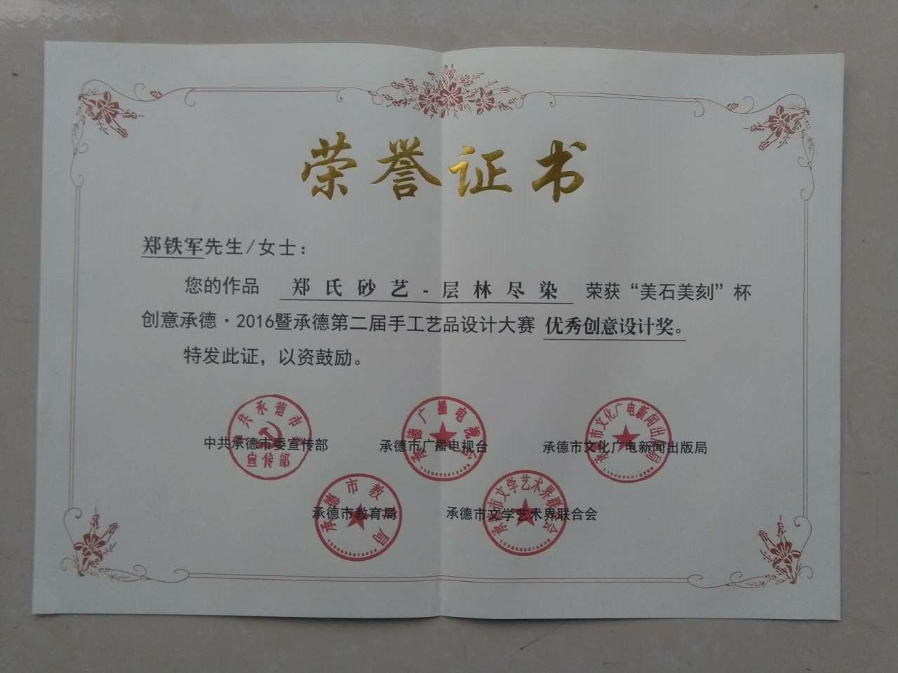 2016北京設計周之旅承德分會場暨第二屆承德市手工藝品設計大賽,9月20日在承德科技大廈盛大開幕。市委宣傳部長張慶祥、副部長冉君、市文聯主席石玉鳳等出席開幕式。含鄭氏砂藝在內的60多家工藝品廠家出席開幕式并出展作品。