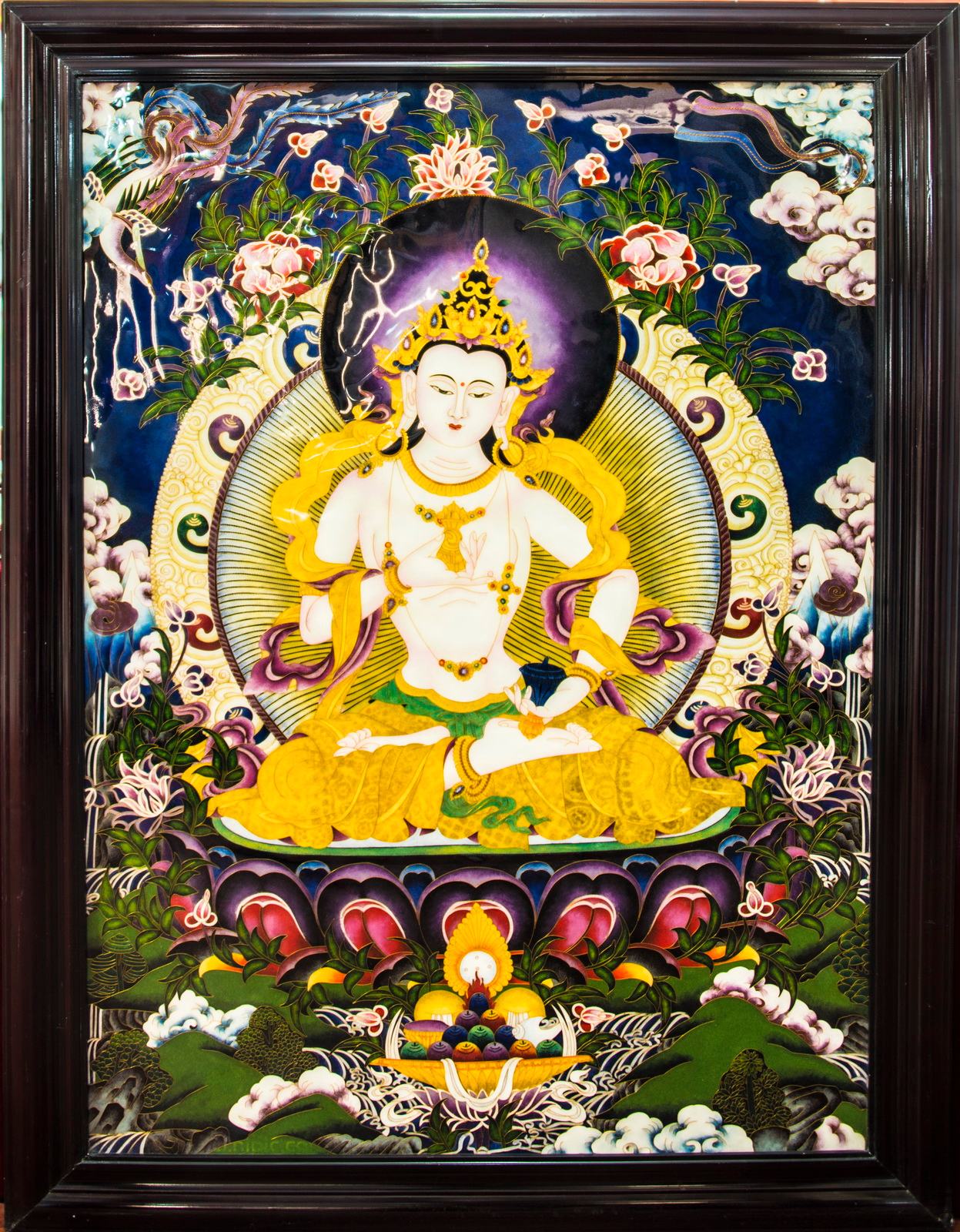 鄭氏砂畫由晚清時代的鄭克祥始創(chuàng),距今已有160多年的歷史。制作取材皆低碳環(huán)保,以精選的天然彩砂和優(yōu)質(zhì)的金銀絲為主要原料,工藝上借鑒了景泰藍(lán)的掐絲、點藍(lán)等手法,畫面鮮艷靚麗、光澤剔透,主題鮮明,且永不褪色,具有欣賞收藏雙重價值。